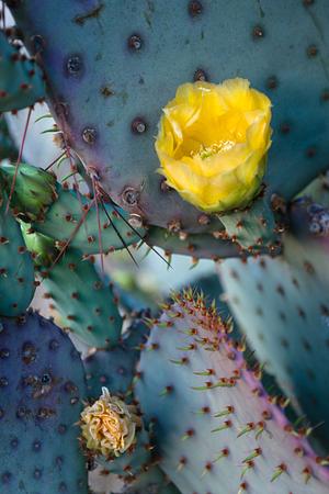 Life stages of prickly pear flowers on display in the Phoenix Mountains, AZ