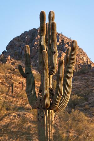 Giant saguaro lines up with Piestewa's sister in the Phoenix Mountains, AZ